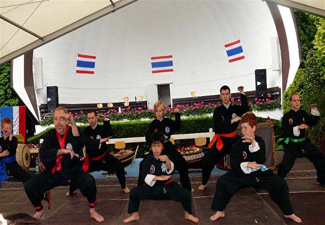 Der Ursprung des Kung Fu's, als auch allen anderen chinesischen Kampfkünsten, liegt im legendären Shaolin Tempel - einem Kloster in der Provinz Henan, VR China. Von dort aus breitete sich das Shaolin Kung Fu über ganz China aus. Mittlerweile existieren über 200 Stile, die auf gemeinsame Wurzeln zurückgreifen können. In der Sport Akademie Dr. LEE unterrichten wir zwei kombinierte Kung Fu-Stile. Das südchinesische "Shaolin Kung Fu der 10 Tierstile" (chin. "Shaolin Shi Xing Chuan") mit Stilen wie Schlangen-, Affen-, Tiger-, Kranich-, Adler-, Panther-, Löwen-, Bären-, Pferde- und Drachentechnik. Jede dieser Techniken ist für spezielle Bereiche des Trainings entwickelt worden. Bei der Schlangentechnik werden innere Kräfte (geistige und körperliche Kraft) gelehrt während z.B. bei der Tigertechnik das Training des ganzen Körpers im Vordergrund steht - vor allem Arm-, Bein- und Hüftbewegungskraft. Die Panthertechnik beinhaltet Schnelligkeit und Sprungkraft, beim Affen dagegen einen flinken Laufstil und geschmeidige Bewegungen. Im Shaolin Shi Xing Chuan Kung Fu werden vorwiegend die Hand- und Armtechniken trainiert. Der andere Stil ist das nordchinesische "Geheimnis der Gottesanbeterin Kung Fu" (chin. "Mimoen Dang Lang Kung Fu"), mit seinen über 118 verschiedenen Fußtechniken. Im Mimoen Dang Lang Kung Fu kommt es vor allem auf Schnelligkeit und Beweglichkeit an. Dabei wird mit Händen, Füßen, Sprüngen etc. versucht gleichzeitig anzugreifen wobei die Angriffe so schnell hintereinander kommen wie Kugeln aus einer Maschinenpistole. Vor allem die Fußtechniken werden hier besonders sorgfältig trainiert. Die Kombination beider Kung Fu-Stile trägt den Namen "Shaolin Lee Gar Kung Fu", die die Klasse beider Stile beschreibt, aus denen sie entstammen. Im Gegensatz zum südchinesischen Stil, wo meist nur mit den Beinen bis zur Mitte getreten wird, sind die Fuß- und Beintechniken im Mimoen Dang Lang Kung Fu hoch und enthalten kunstvolle Luftsprünge, was ein wunderbarer Ausgleich zu den vielen verschiedenen Handtechniken des Shi Xing Chuan Kung Fu ist. Somit werden beide Stile wirkungsvoll miteinander verbunden, was die Effektivität erhöht und die Anzahl der Techniken um ein vielfaches steigert.
